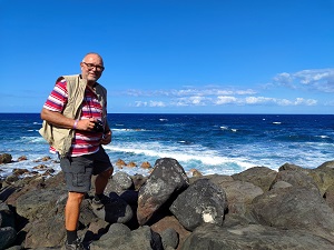 und kleinen Atlantikwellen auf die vulkanischen Felsen treffen.  |