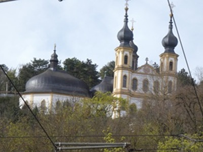 Über der Stadt thront das Käppele, die Wallfahrtskirche Mariä