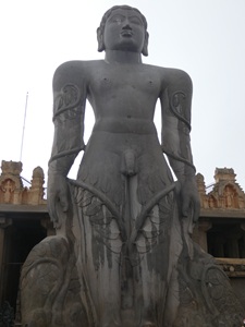 | Der Tempel mit einer ca. 17 Meter großen Statue eines Jainheiligen ist schon sehr beeindruckend. | ||||||||||||||||||