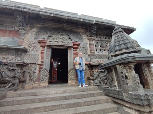 | Am nächsten Tag ging es zum Shiva-Tempel in Halebid. Der Tempel wurde 1150 nach Chr. von der Hoysala-Dymnastie erbaut und wurde dem Gott Shiva geweiht. Der Tempel wurde komplett aus Speckstein erbaut. Er zählt zu den Kunstvollsten Tempelanlagen Südindiens und wurde 2023 zum UNESCO-Weltkulturerbe erklärt. | ||||||||||||||||||