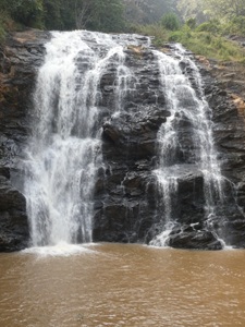 | Nächster Halt war an den Abbey Falls in Coorg. Über einen ca. 800 Meter langen Wanderweg ist der Wasserfall zu erreichen. Das Wasser stürzt ca. 21 Meter in die Tiefe. Der Wasserfall wird von Teilen des Flusssystems der Kaveri gespeist. | ||||||||||||||||||