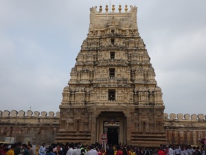 | Anschließend haben wir uns die Tempelanlage Ranganathaswamy angeschaut. Eine Inschrift am Tempel zeigt, dass der Tempel bereits 894 n. Chr. erbaut wurde. | ||||||||||||||||||