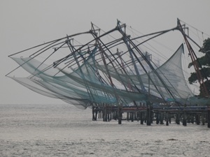 | Bei unserem Rundgang kamen wir an den chinesischen Fischernetzen vorbei. Diese Fischernetze sind stationäre Fangvorrichtungen für Fische und andere Meerestiere. Im 14. oder 15.Jahrhunndert wurde diese Fangvorrichtung durch chinesische Händler oder Seefahrer eingeführt. Die Netze haben einen Durchmesser von mindestens 20 Metern und sind ca. 10 Meter hoch. Jede Anlage wird von mindestens 6 Fischern betrieben. | ||||||||||||||||||