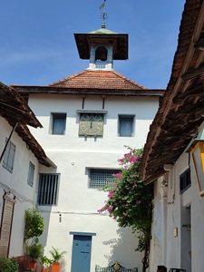 | Die Paradesi-Synagoge in Kochi ist die älteste noch aktive Synagoge in Indien. Sie wurde 1568 erbaut. 1664 wurde sie von den Portugiesen beschädigt und 2 Jahre später von den Niederländern restauriert. Der Boden ist mit blau-weißen Fliesen belegt, von denen jede einzelne ein Unikat ist. Belgische Kronleuchter, goldene Möbel und handgemalte Tafeln schmücken den Innenraum. | ||||||||||||||||||