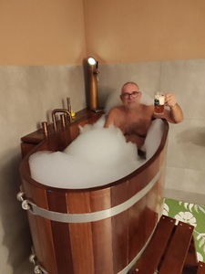Was für eine Wohltat. Das 45-minütige Bad im großen Holzzuber