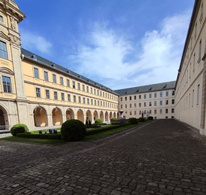 Innenhof und ein romantischer Kreuzgang, der bis ins 12.Jahrhundert zurückgeht.